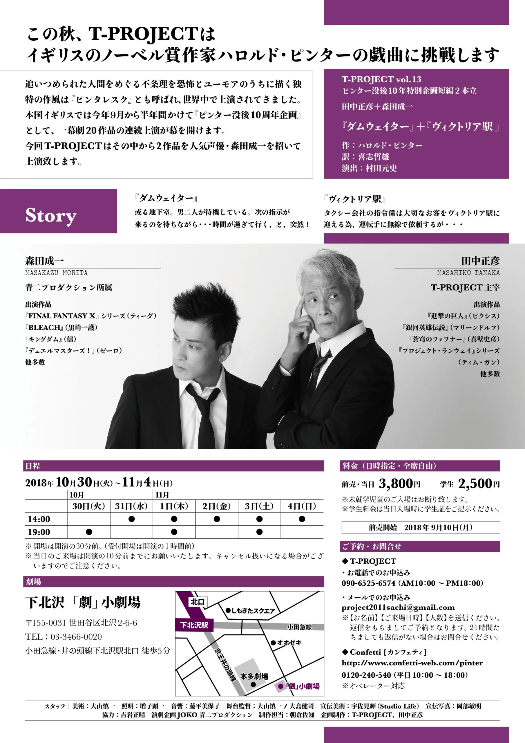 staff ■ 美術:大山慎一/照明:増子顕一/音響:藤平美保子/舞台監督:大山慎一、大島健司/宣伝美術:宇佐見輝(Studio Life)/宣伝写真:岡部敏明/協力:吉岩正晴、演劇企画JOKO、青二プロダクション/制作担当:朝倉佐知/企画制作:T-PROJECT、田中正彦